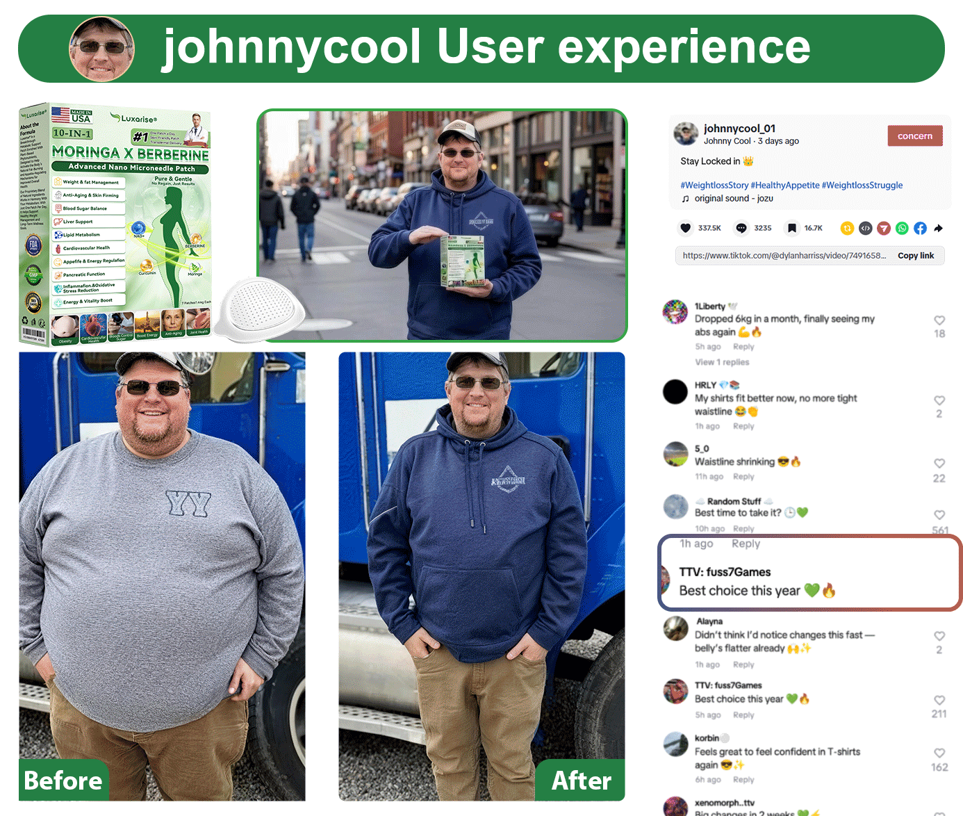 ๐๐ ๐ท๐๐๐๐ honestly changed everything for me. I started using the patch daily, and by the third week, I had enough energy to handle a full 12-hour route without struggling. No more afternoon crashes. No more relying on multiple energy drinks just to get through the day. Over 14 weeks, I lost 105 pounds, and for the first time in years, I actually feel like myself againโstronger, clearer, and full of life, like Iโm back in my 40s.โโ johnnycool, Professional Truck Driver