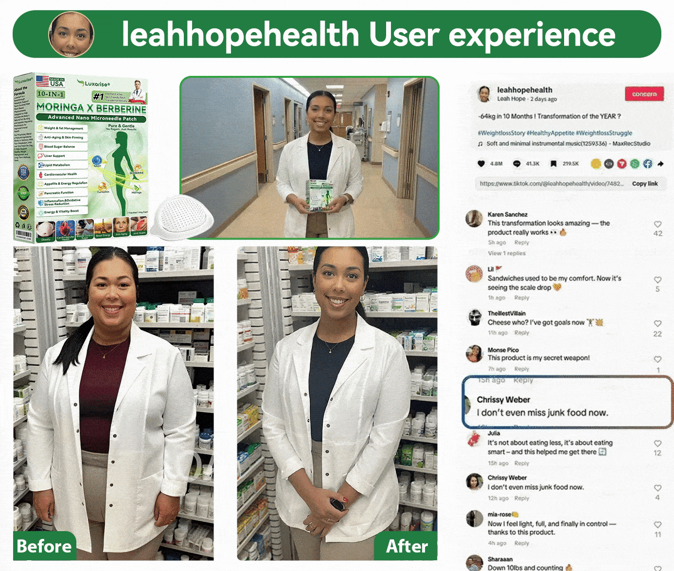 What truly surprised me, though, was my skin. Throughout the entire weight-loss process, my skin remained firm and elasticโsomething I had never experienced with injectable or capsule-based weight-loss products in the past. Today, I feel healthier, lighter, and more in control of my body and my life than ever before.โโleahhopehealth, Pharmacist