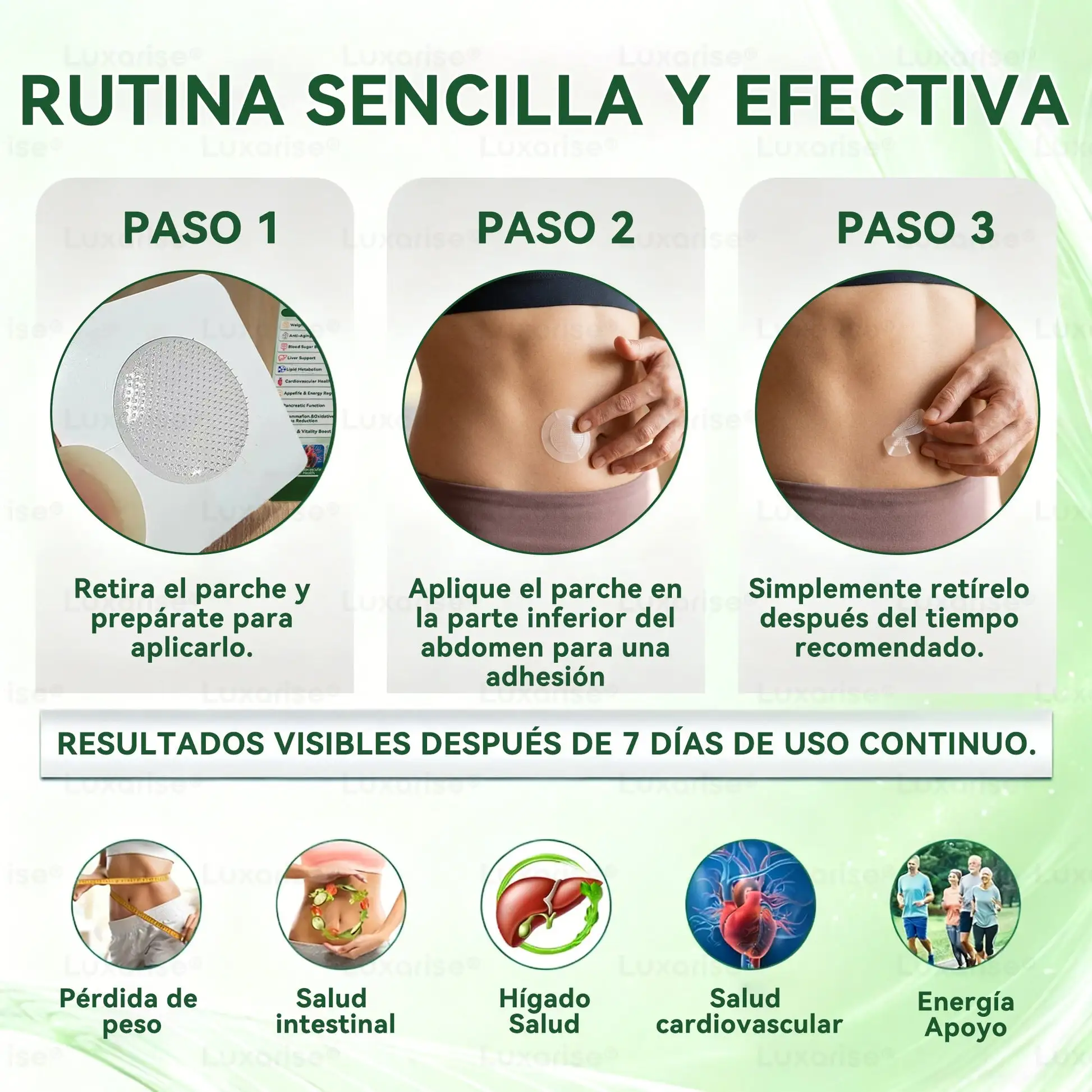 Fรณrmula segura y suaveย : Esteย parche no contiene hormonas, estimulantes farmacolรณgicos, cafeรญna, laxantes, colorantes artificiales, conservantes, metales pesados ni otros aditivos nocivos. Suave con la piel y no irrita.
